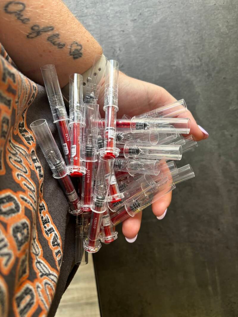 Afgelopen woensdag mocht ik gelukkig de laatste Fraxiparine spuiten en ik ben trots, want ik heb er maar 1 blauwe plek aan over gehouden. Al die 4 weken heb ik er geen harde schijven, gekke of zere plekken aan over gehouden.